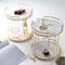 2 Tier Makeup Organizer: Stylish gold metal frame with a shiny finish and removable marble glass trays for easy cleaning and elegant display.